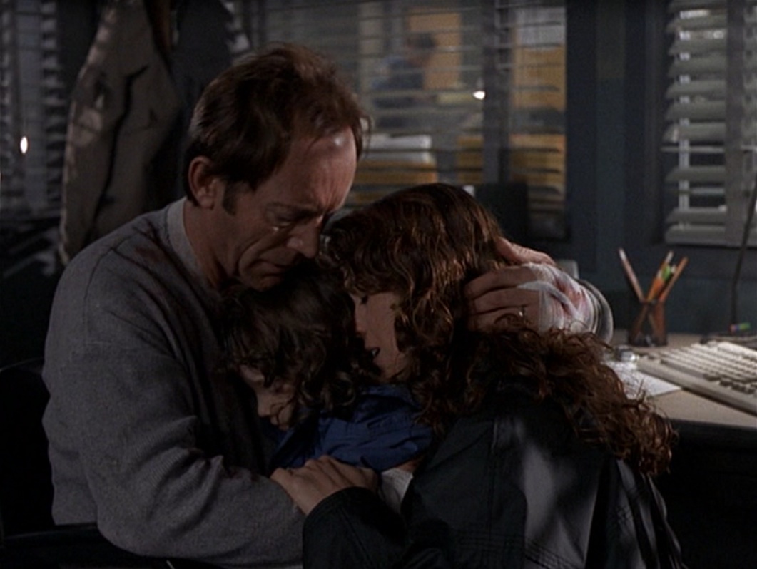 Whilst the exact nature of Frank’s facility remains somewhat nebulous throughout Millennium, it is here for the first time represented as something akin to an illness, and potentially a genetic condition at that. The allusions to mental illness are clearly drawn and, in the context of the episode’s plot and the audience’s knowledge of Frank’s chequered past, it makes for a powerful comparison. The episode ends with Frank and Catherine—always devoted parents—discussing the implications for their daughter: