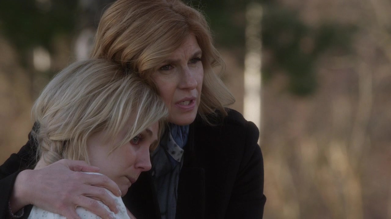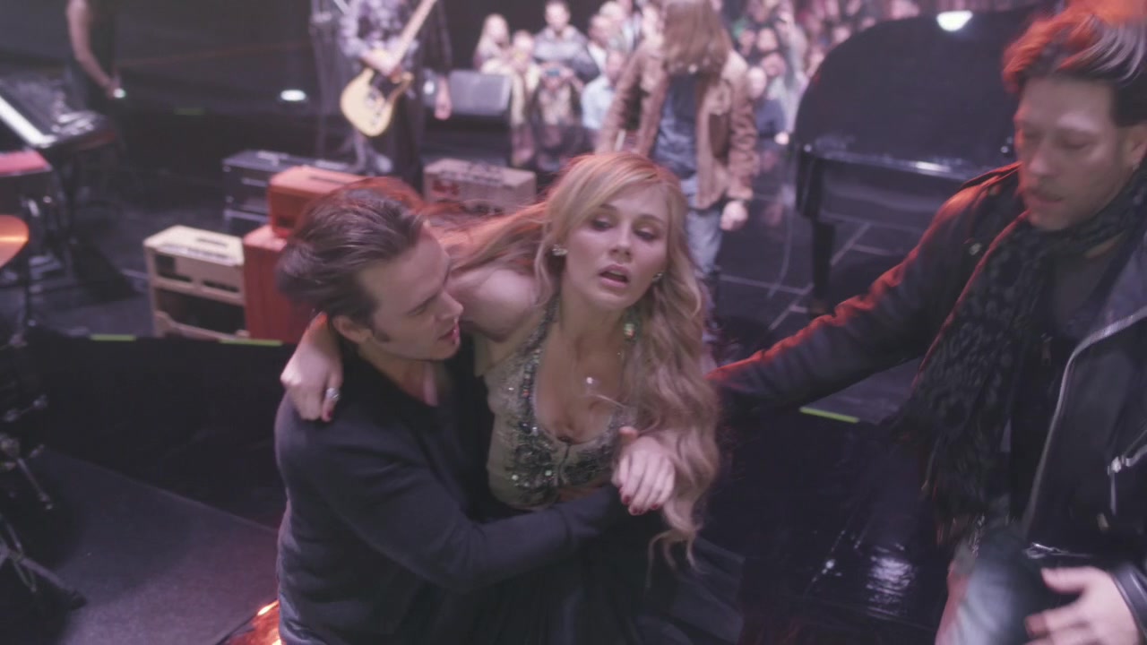 On stage, Scarlett suffers a psychotic episode. Her visions blurs, then she begins railing against an invisible enemy—clearly her bullying mother—before crawling under a stage piano and clinging onto it for dear life. She is unceremoniously escorted from the stage, sedated by a personal physician, then whisked via Juliette’s private jet to a top-notch hospital. When she wakes, she is horrified to find herself secured to the bed, and her mother in attendance. She freaks out, escapes (somehow) her bonds, and flees the hospital. Her mother gives chase, yelling after her in her own, counter-productively neurotic way, but it is Rayna’s contrasting, calming influence that is able to reason with Scarlett: