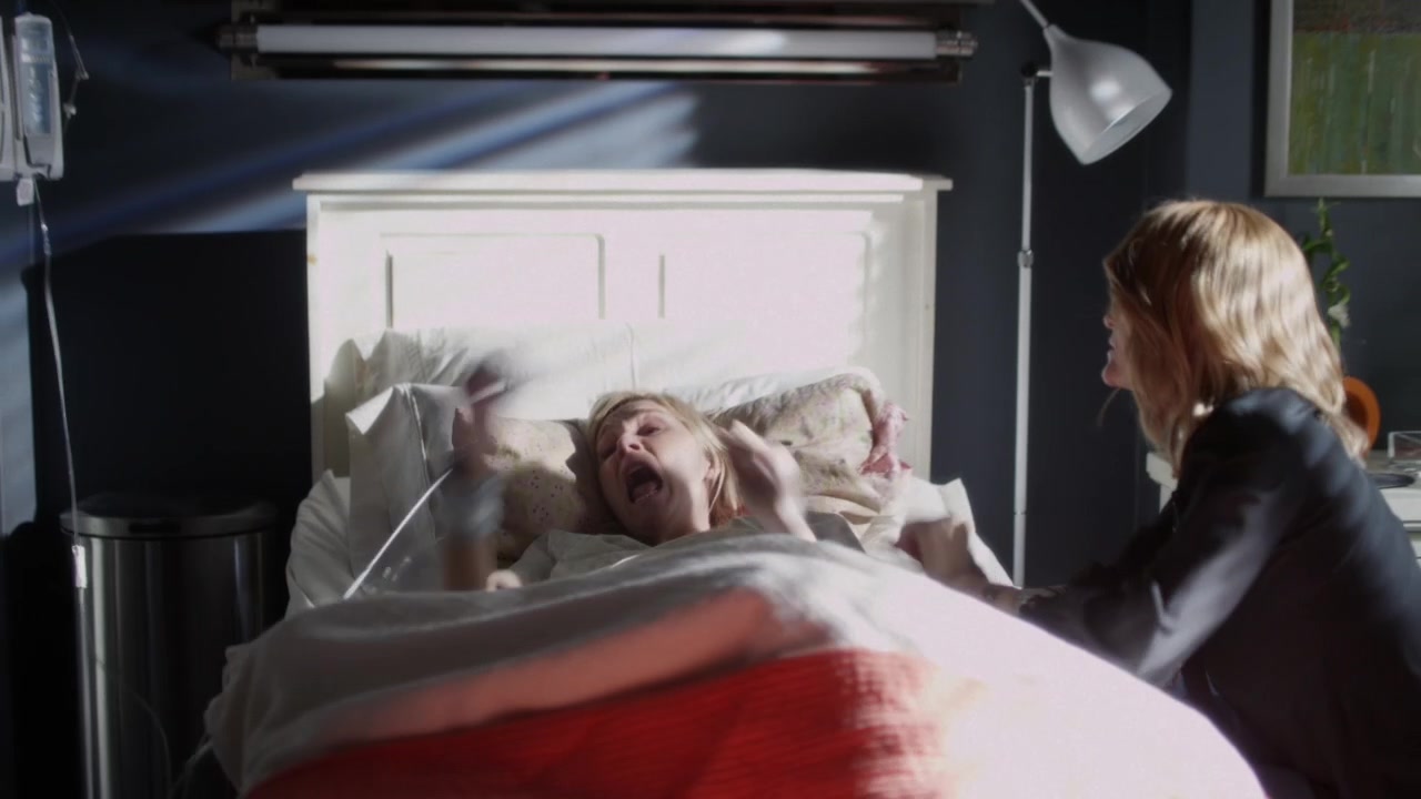 It is a tender scene, and the heart of the episode as Scarlett finally starts to assert what will make her well. She follows this up by confronting her mother, who is desperate for her to remain in hospital and undergo further treatment, and telling her that the very best thing she can do for her daughter right now is to go back home and give her some space. It is odd, in the context of both the episode and the ongoing series, that Scarlett is suddenly able to find her inner strength and to acknowledge the string of bad decisions she has made and that have gotten her to this crucial crossroads in her life. Her dialogue also acknowledges that extended treatment served her mother’s wellbeing, such that the show takes care not to advocate refusal of treatment. What it does do effectively, however, is to highlight that each individual has different needs, and that these needs should be understood and respected.